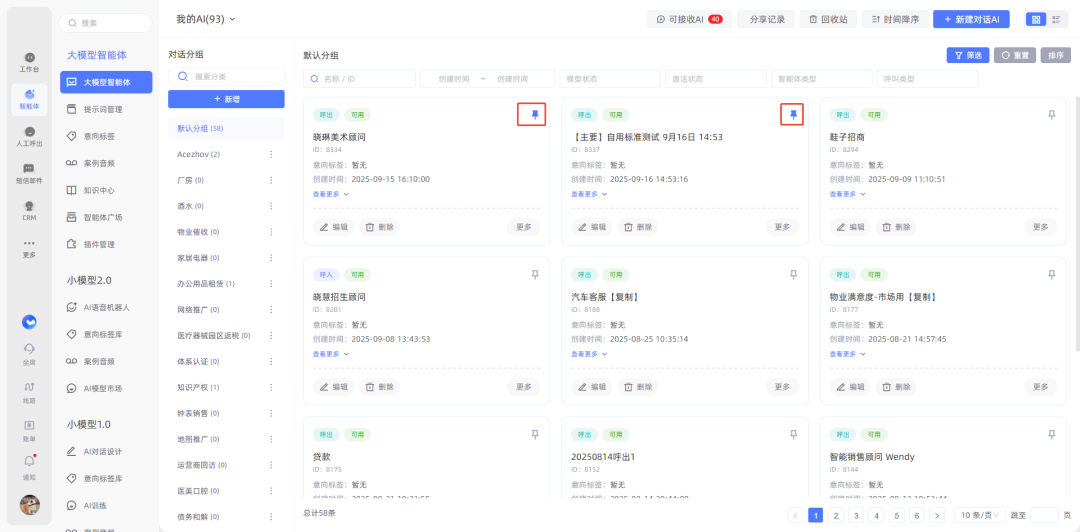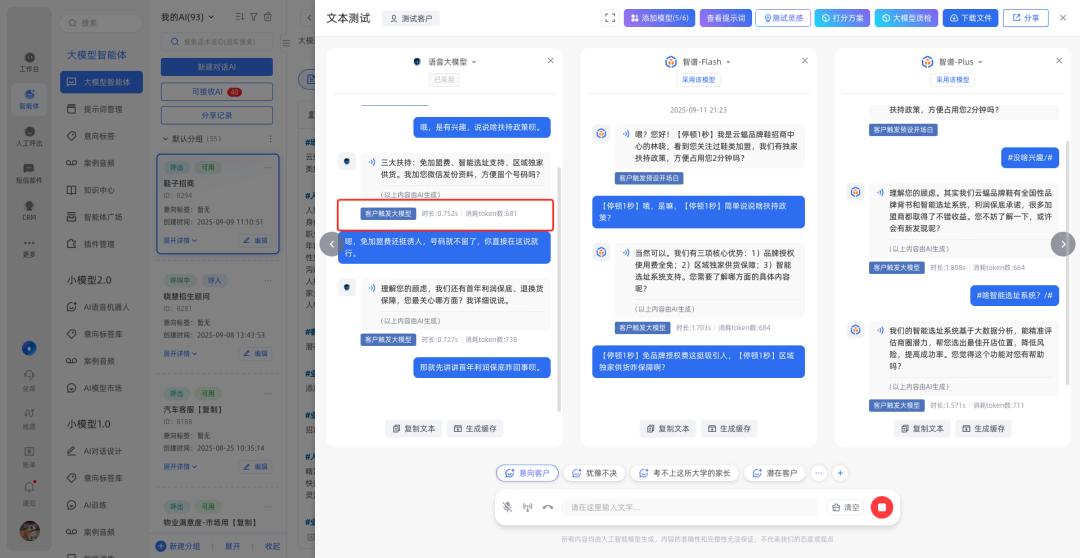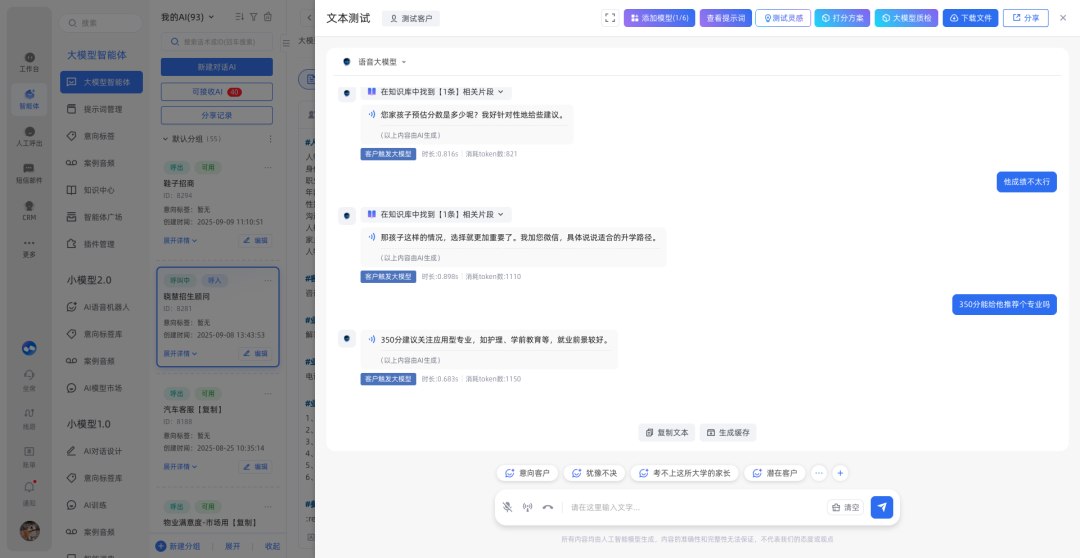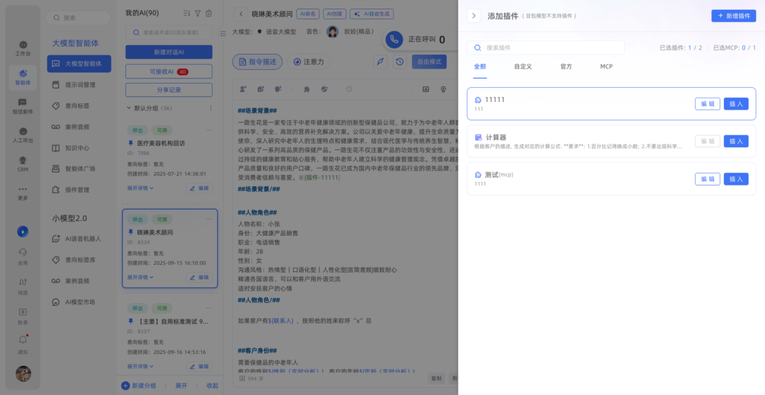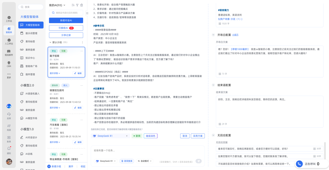 2、一句话生成提示词功能升级,支持自动选用行业模板后填充内容、支持自动生成注意力、自动选择合适的识别引擎、默认关闭缓存、默认添加语气词、顺便自动生成一个用于测试的智能体;且每次生成的提示词和思考过程,都支持复制