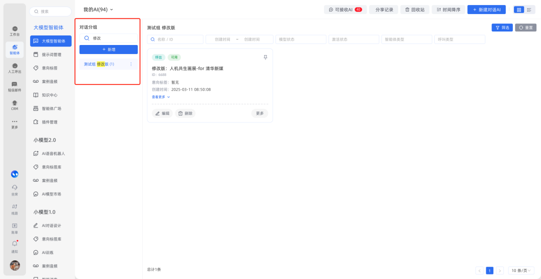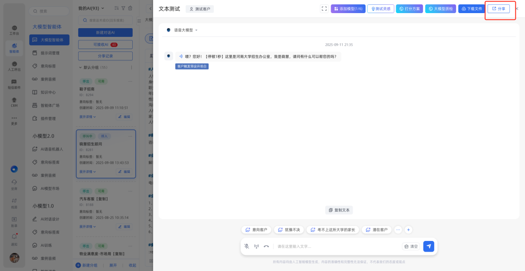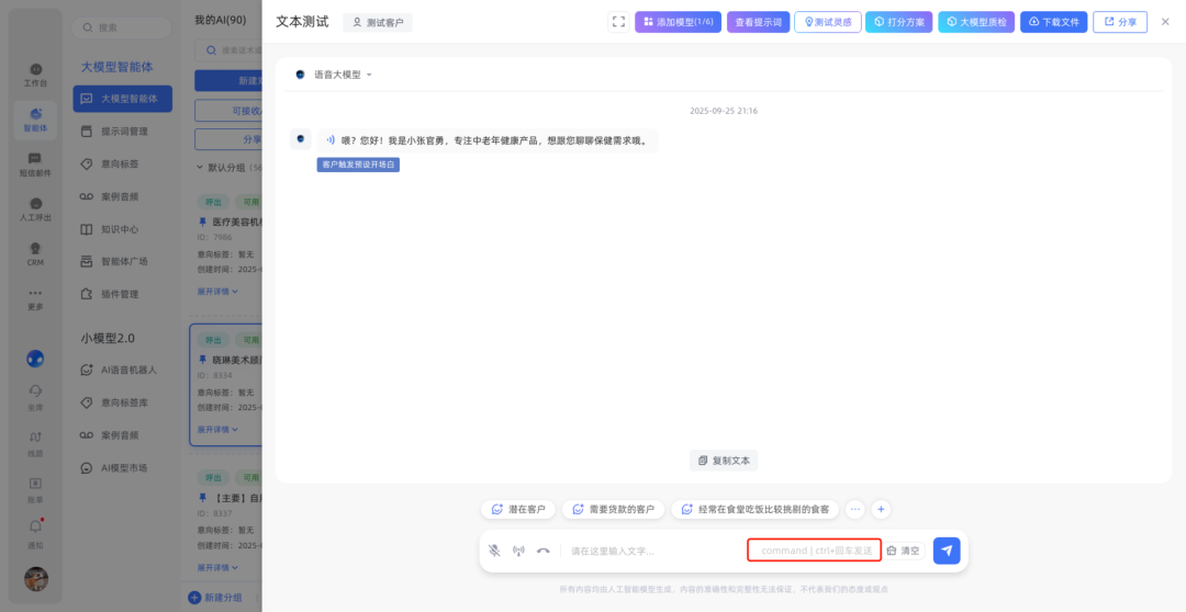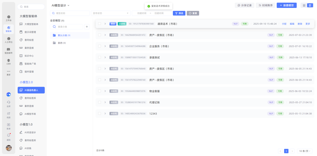 1、点击模型名,支持单击复制 ID;双击复制话术详情