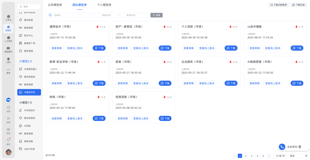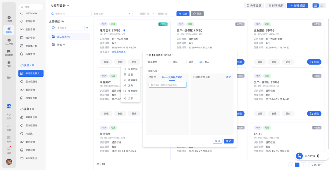 2)个人模型库仅显示由【他人】分享过来的话术组