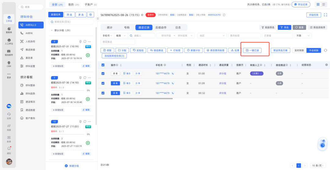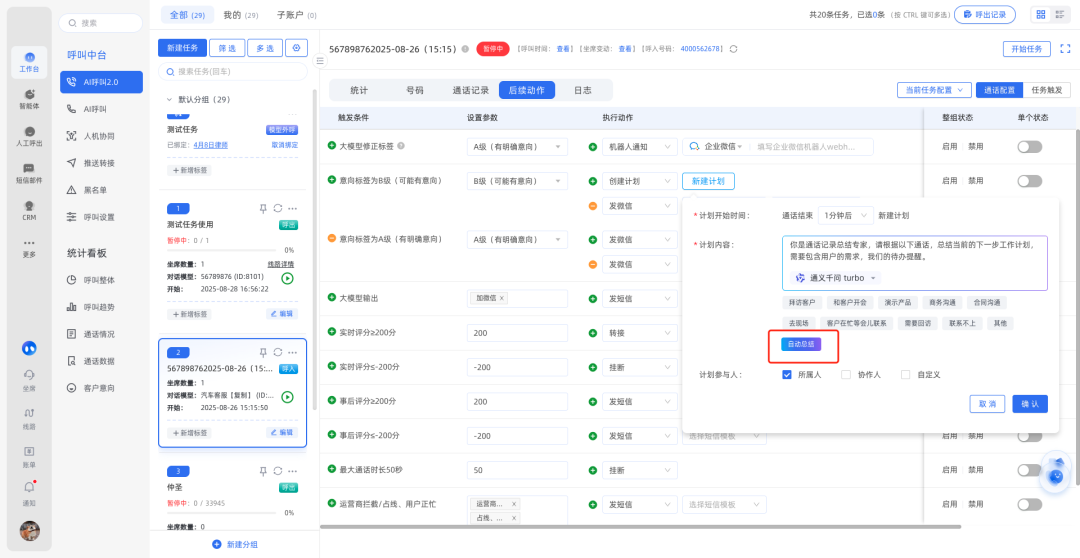 4.呼叫2.0的api接口可以在不暂停任务的情况下操作重呼删除等