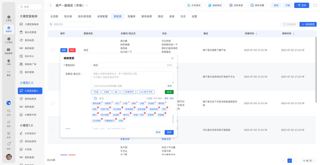 1.意图关键词和知识库关键词的正则表达式在以下两个板块把最大字符限制从100修改到300