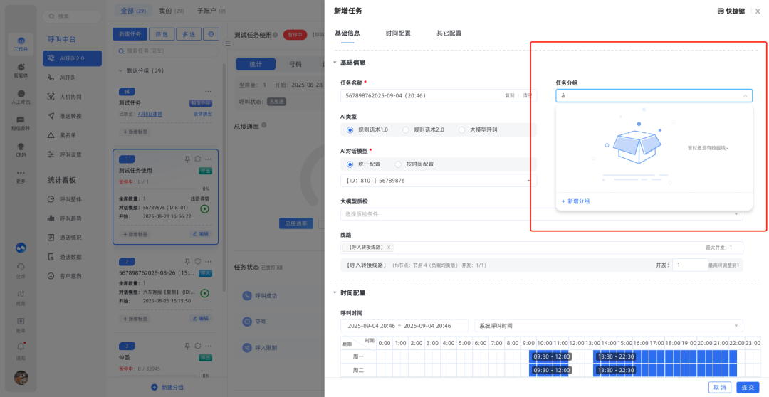5.新建任务的编辑里加一个新增任务分组,用户可以指定该任务进入已有分组或者新创建的分组