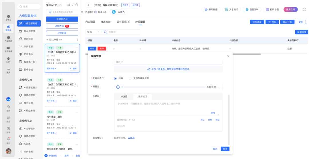 4.模型转接失败处理逻辑优化,可以挂断或者ai继续聊