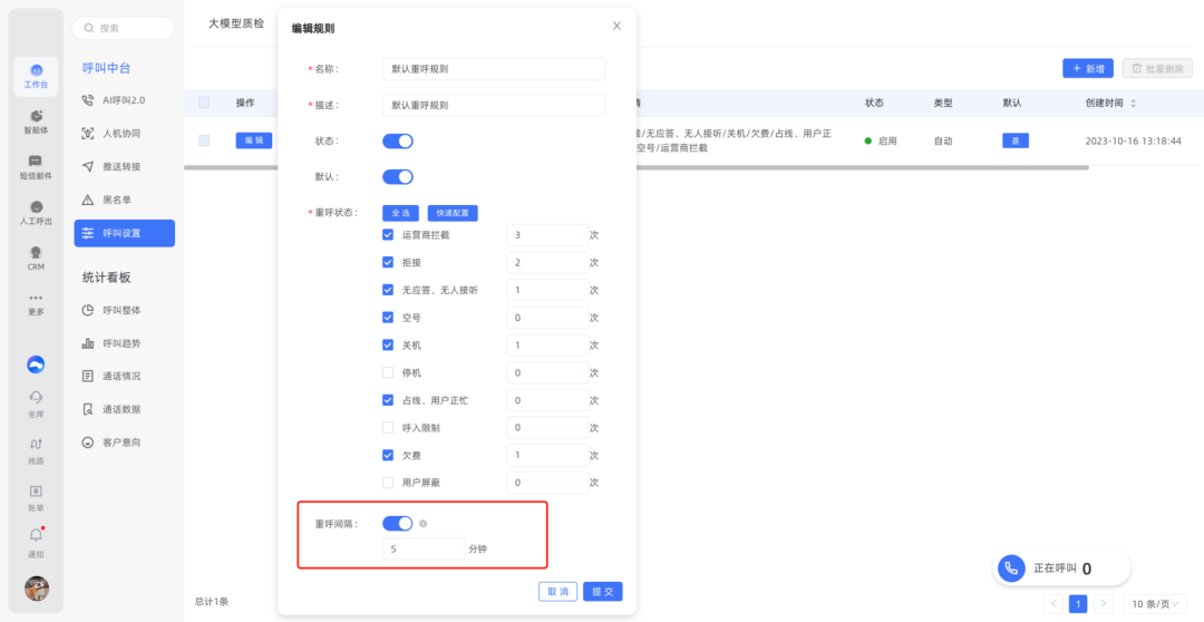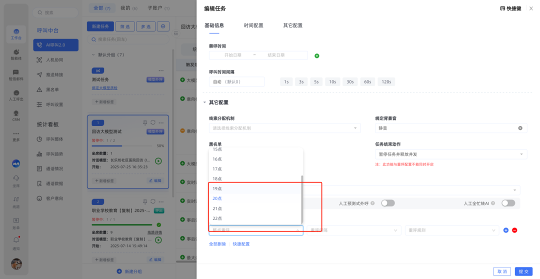 -新增间隔重呼,可以选择间隔固定分钟进行重呼(禁止在任务启动时修改)