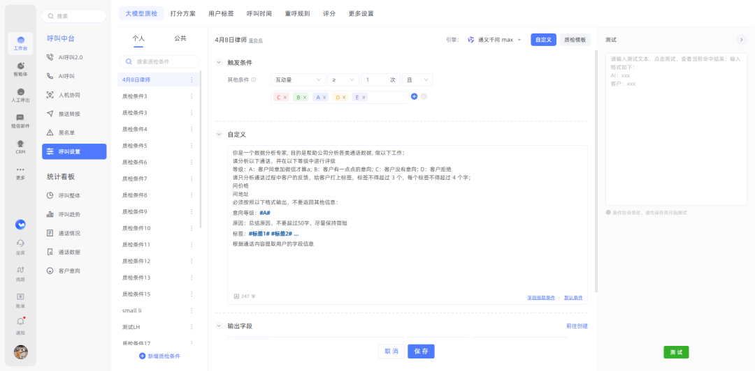也可以在用户画像中插入,同时在客户信息、通话详情的字段中展示