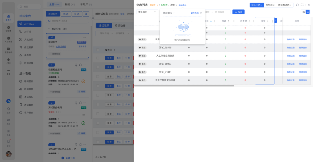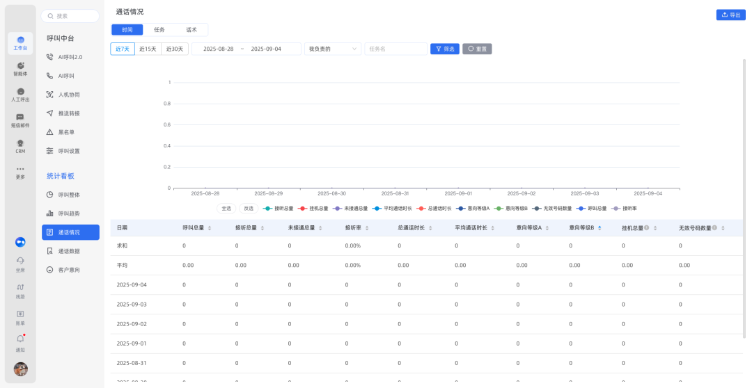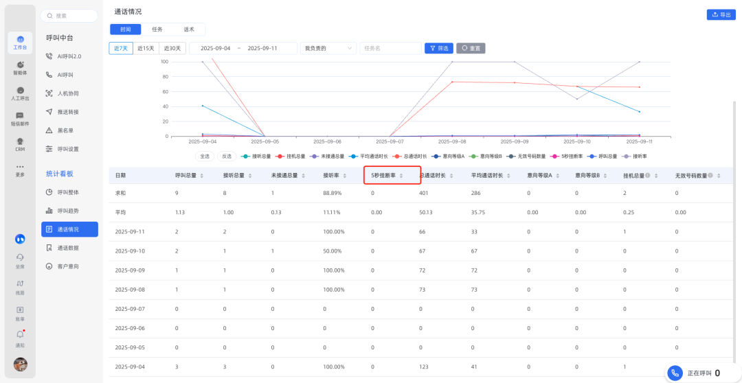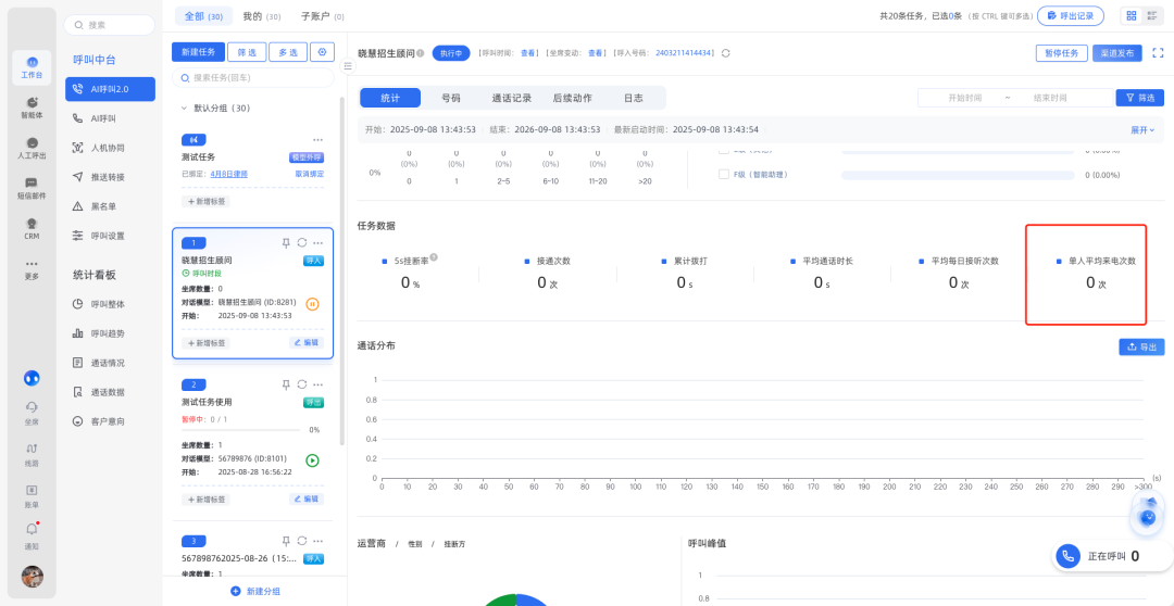 -单人平均来电次数:指的是按总接通除以电话数量。将会在在任务统计,统计面板展示