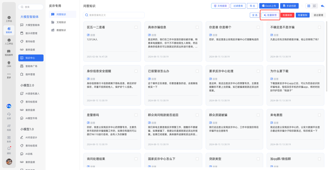 5.大模型知识库新增批量联想功能,生成后可以直接同步问题侧