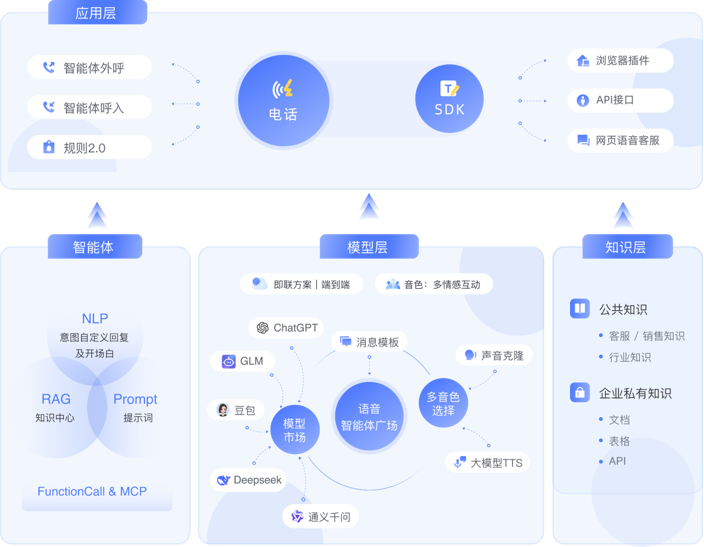 "基础大模型会不会碾压应用层?"面对这个行业普遍焦虑的问题,魏佳星给出了否定答案。他展示了一张多模型协作流程图,清晰解释了云蝠智能如何通过"模型编排引擎"实现技术整合:当用户发起语音请求时,系统会根据场景特性自动匹配最优模型组合,比如金融客服场景侧重准确率,电商场景则优先响应速度。