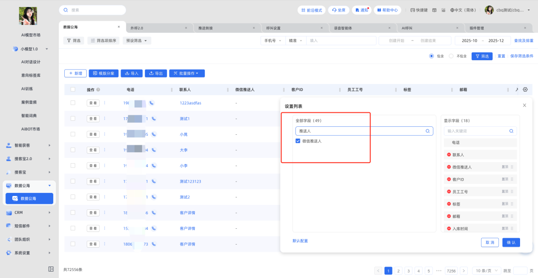 数据公海新增微信推送人字段,支持在公海查看推送人