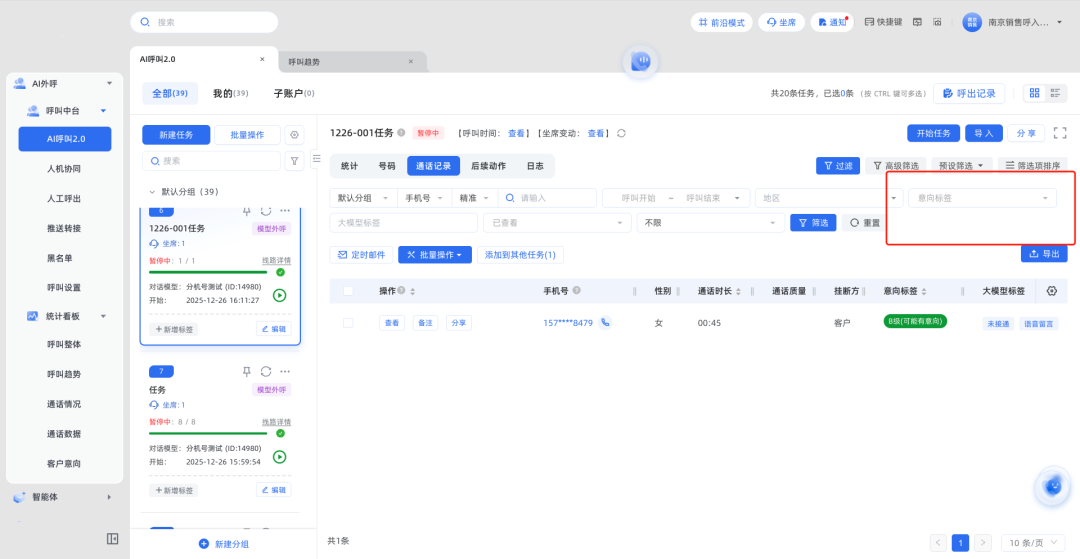 6.通话记录支持原定标签筛选