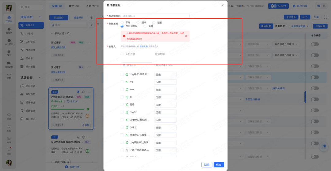 3.微信推送可以按照比例配置,并给出注意提醒: