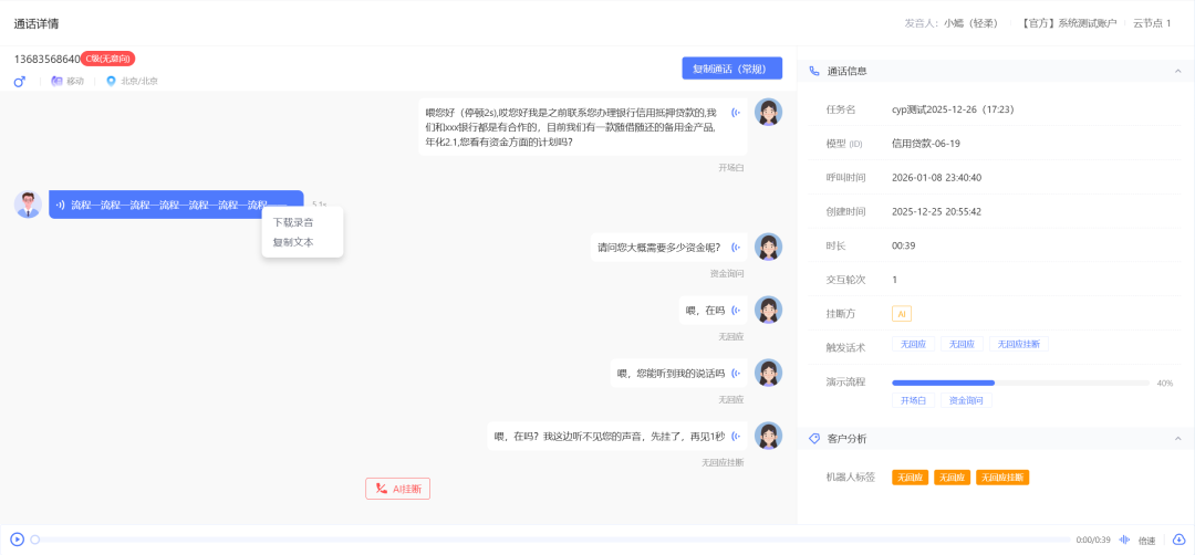 4.大模型话术被锁定的情况下依然支持文本和语音测试