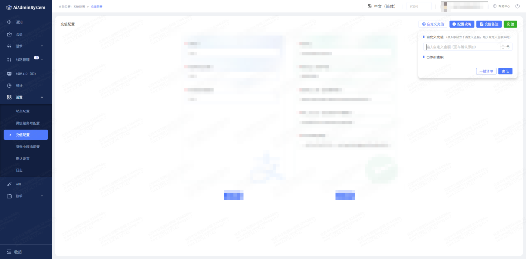 1、代理支持设置默认充值金额,最低自定义金额为十元