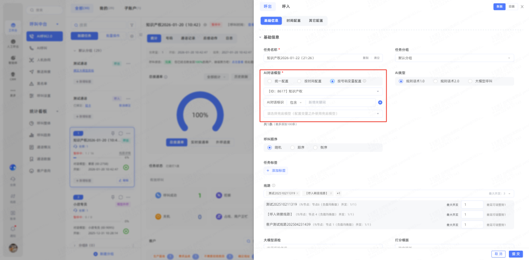 1、新版呼叫支持按变量选择话术,支持api操作