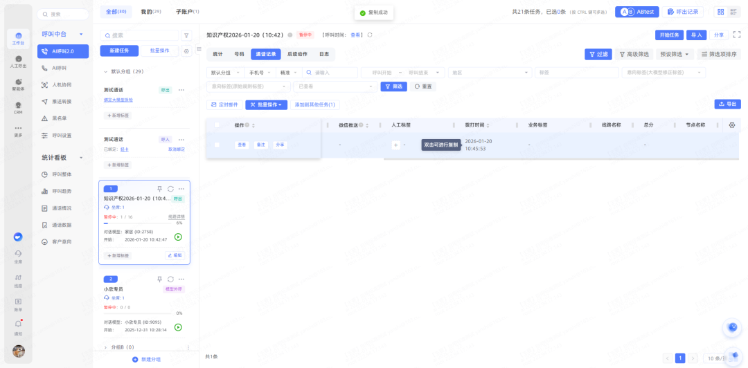 6、支持在通话记录、CRM中对单个字段内容的双击复制