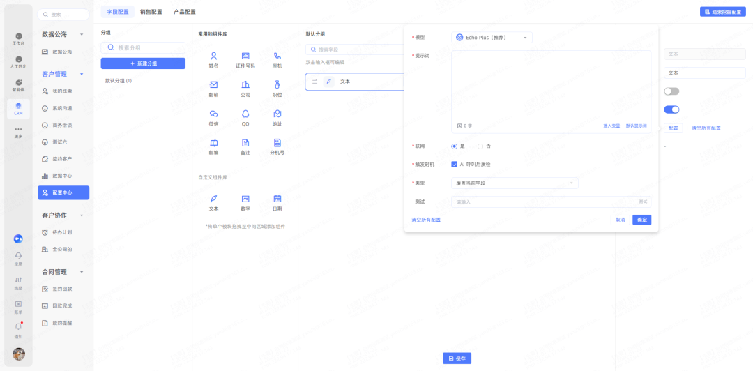 4、自动补全支持在CRM字段创建完毕后对内容进行抽取