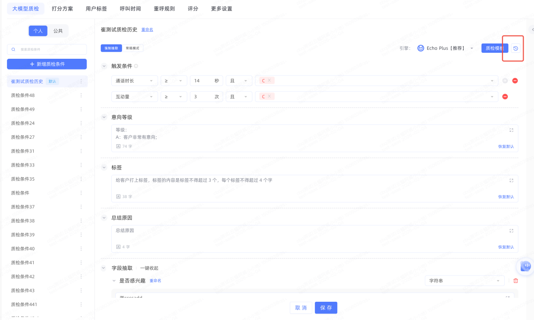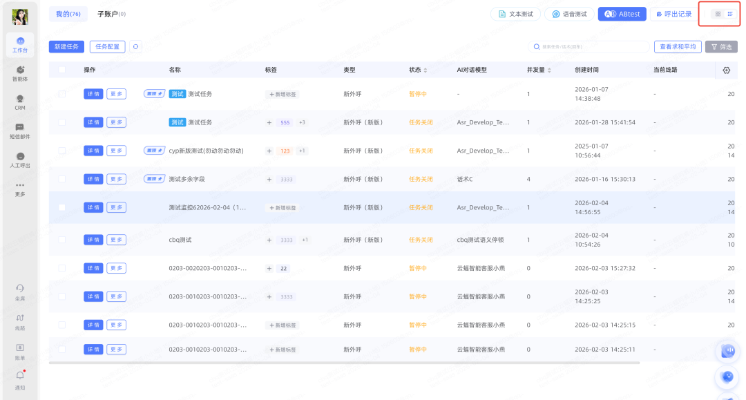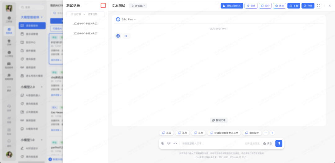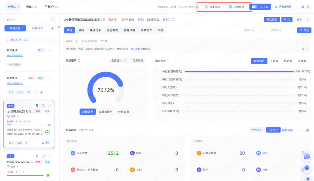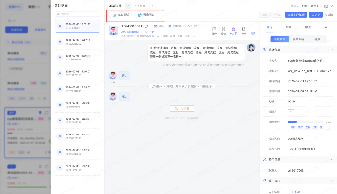 1.外呼2.0和通话记录中加入语音测试和文本测试
