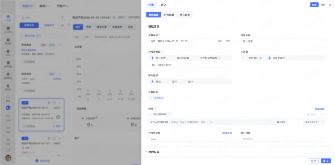 1、创建任务默认使用新版外呼