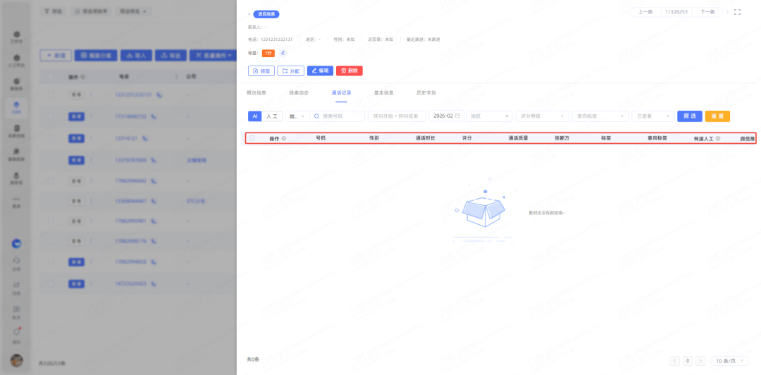 1、CRM公海通话记录支持展示自定义字段